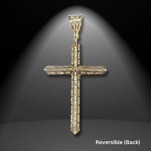 ✨ Reversible Opulence: Revel in the artistry of our Gold Cross's reversible design, showcasing equal beauty on both sides. It's not just a pendant; it's a versatile masterpiece with two sides of elegance and significance.