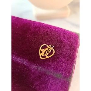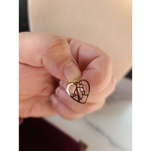 This is a vintage 14k yellow gold heart shaped #1 Mom pendant.