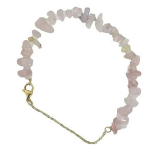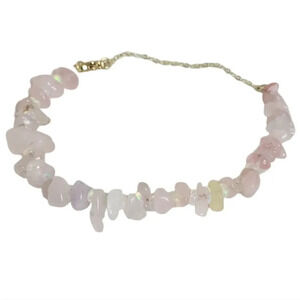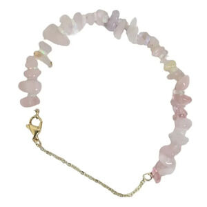 14K Gold Dainty Chain Natural Ethiopian Opal Pink Quartz Bracelet