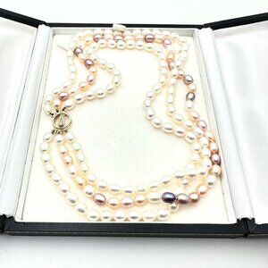 14K Gold Diamond Clasp Womens Multi Strand Pearl Estate Necklace Original Box