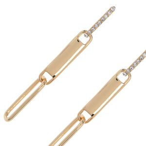14K Gold Diamond Paper Clip Earrings CZ Pave Diamond Long Dangle Earrings Gold Plated with 14K Gold
