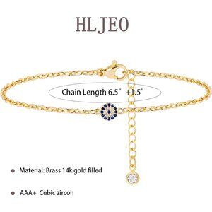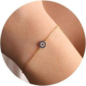 EVIL EYE BRACELETS: A blue eye is the color of good luck or good karma. This color projects positive energies such as creativity, motivation, commitment as well as protection against evil eye. it dainty gold bracelet is set with Cubic Zirconia then Plated in 14K Gold giving it the long lasting luster.