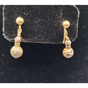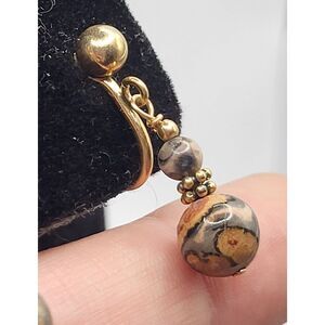 14K Gold Fill Agate Dangle Drop Earrings Clip on 1in | Materials: 14k gold fill, agate | Length: 1in | Clasp: clip on | Signed? 1/20 14k HK | Excellent vintage condition