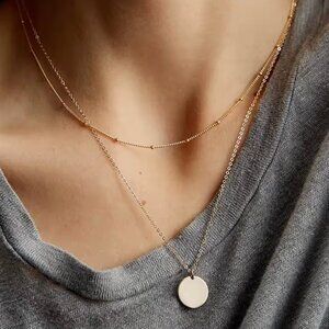 Turn heads with this 14K gold filled pendent layering necklace with chain detailing