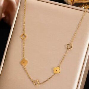 14K Gold Filled Four Leaf Clover Necklace over PVD Stainless Steel