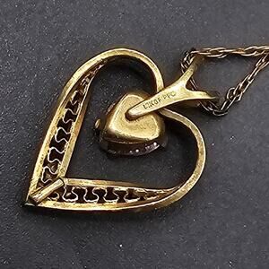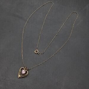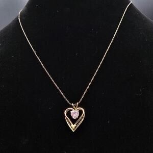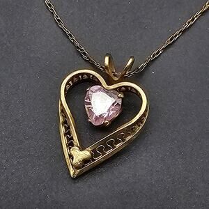 14K Gold Filled Heart Pendant Necklace Pink Rhinestone Signed PPC