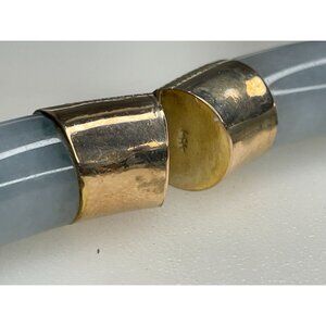 14K Gold Hinged Jadeite Bangle Bracelet 68 Grams With Safety Chain & Floral Engr