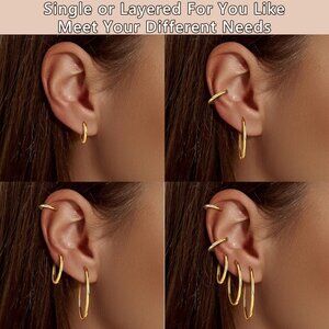 【Comfortable & Hypoallergenic Earrings Pack】Hypoallergenic gold hoop earrings,nickel-free and lead-free hypoallergenic hoop earrings for women's sensitive ears,Lightweight comfortable Hoops,Easily wearing and take off with a sturdy and secure flexible clasp,Lightweight design are very comfortable to wear