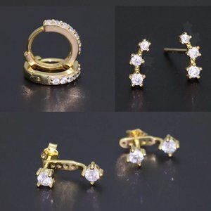 14K Gold Minimalist Set: 1pc Earring Jacket, 1pc Huggie Hoop, 1pc Ear Climbers