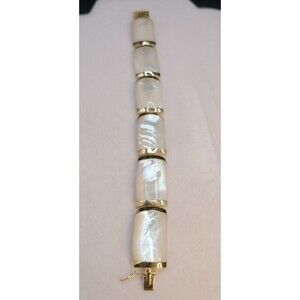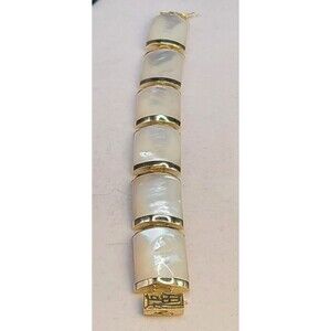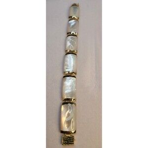 14K Gold Mother Of Pearl Bracelet 7" Long Rectangular Stones