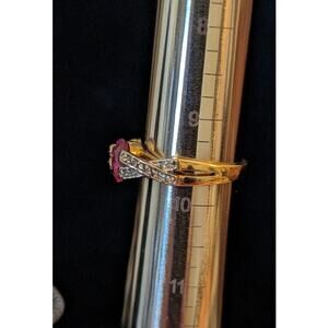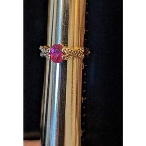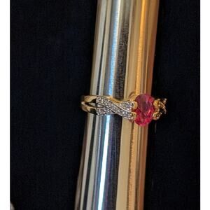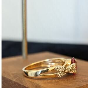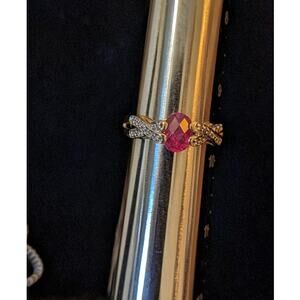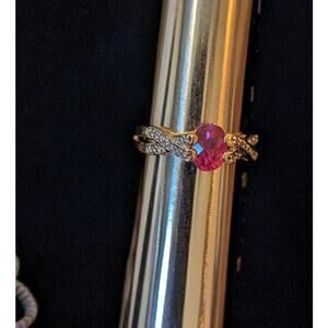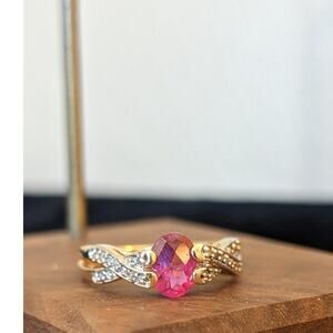 14K Gold Natural Pink Tourmaline & Diamond Criss Cross Band Ring Size 9.5