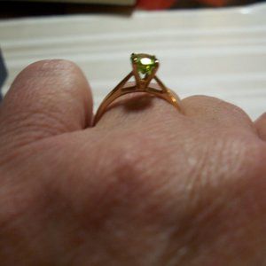 Beautiful 14K yellow gold peridot ring. The stone measures 8 x 6mm. Size 8.