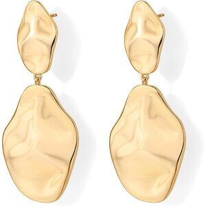 14K Gold Plated 925 Sterling Silver Posts Teardrop Statement Dangle Earrings
