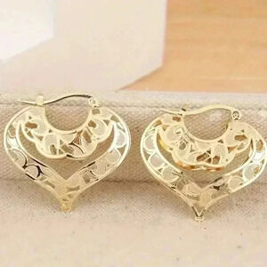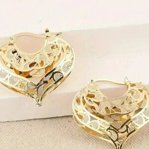 You will be astonished at how beautifully crafted these earrings are! 14K Gold Plated Hollow Out Heart Hoop Earrin