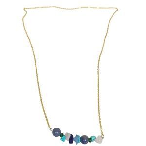 14K Gold Plated Bar Pink Quartz Turquoise Lapis Necklace