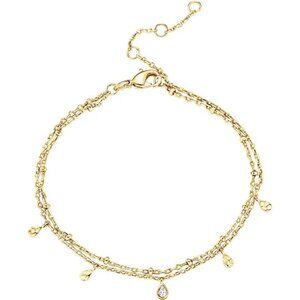 14K Gold Plated Beaded Cuban Cubic Zirconia Simulated Diamond Station Infinity