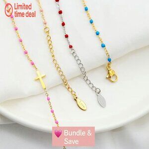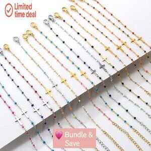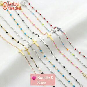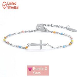 This delicate, faith-inspired bracelet offers a meaningful and adjustable accessory for daily wear. Its simple cross design and beaded chain provide a subtle yet elegant way to express personal belief, making it a versatile piece for layering or wearing alone.
