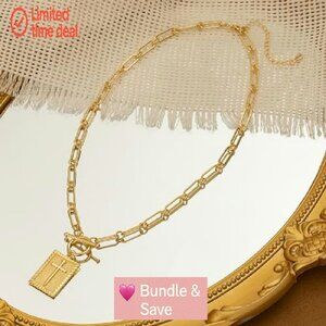 14K Gold Plated Cross Pendant Necklace 16.55" Paperclip Chain Toggle Clasp