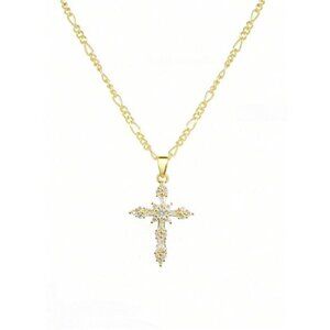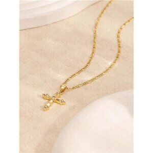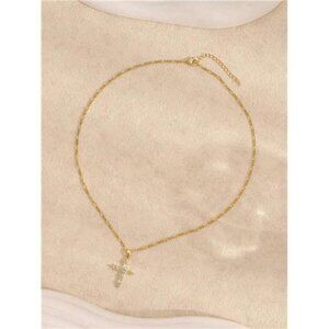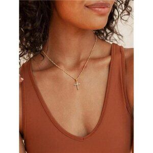 14K Gold Plated Cross Pendant Necklace Dainty Gold