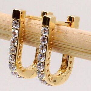 14K Gold Plated Fashion Rectangular Huggies Earrings