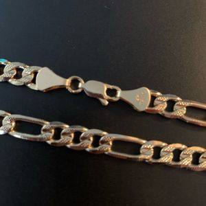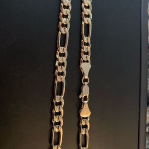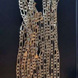 New 14K Gold Plated Figaro Chain Nice deep 14k gold and solid heavy weight to it Size is approx 5mm & 24” long Stamped 14k Italy
