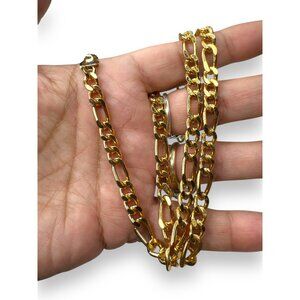 14K Gold Plated Figaro Chain Necklace 24.5" Long Lobster Claw