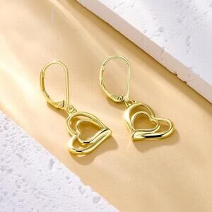 14K Gold Plated Heart Dangle Earrings Dangling Trendy Women Leverback Earings