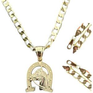 14K Gold Plated Hip Hop Horseshoe U-Shaped Pendant with Cuban Chain 24" 8mm