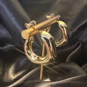 Elegant 14K gold plated hoop earrings designed for all-day comfort. These hoops are lightweight, lead-free, nickel-free, and hypoallergenic, making them perfect for sensitive ears. Stylish curved design adds a modern touch to any outfit, whether casual or formal.
