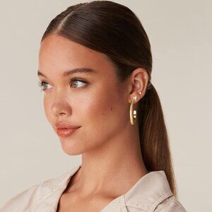 Features: Large enough to turn heads but simple enough for daily wear. The flat edge gives a contemporary vibe, great for layering or wearing solo to add that extra sparkle.