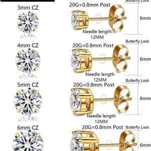 Features: This set offers four sizes of sparkling cubic zirconia studs with a secure prong setting. Crafted from hypoallergenic surgical steel with a bright 14K gold plating, making them ideal for sensitive ears. The butterfly backs snap on snugly, with extra silicone backs for all-day comfort. Great for dressing up or everyday wear.