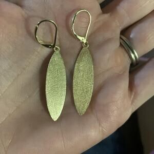 14K Gold Plated Earrings for Women:These 14K gold plated earrings feature a flat, elongated leaf shape with a matte finish for a sophisticated look. Crafted for women, the durable copper base ensures they won’t bend, while the high-quality clasps offer secure, easy wear. These gold dangle earrings are understated yet feminine earrings that go with many outfits.