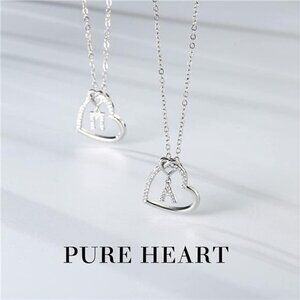 ✔HEART INITIAL NECKLACES : Silver chain letter charm initial necklaces with forever love heart, dainty cute initial heart necklaces for women teen girls jewelry with sweet meaning.