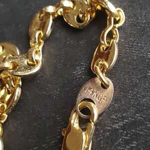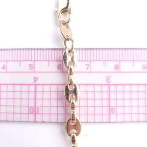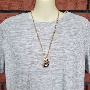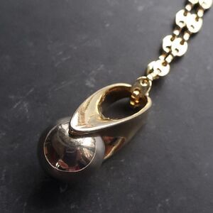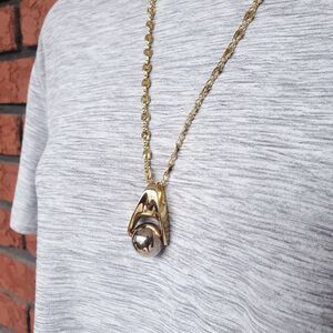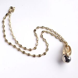 14K Gold Plated Necklace 23" 5mm Puffed Mariner 2 Tone Teardrop Ball Pendant