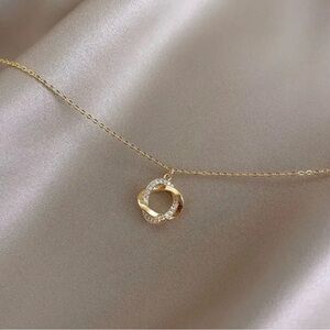 Elegant gold chain with a textured silver-accented pendant. Adds sophistication to any outfit.
