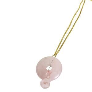 14K Gold Plated Quartz Donut Medallion Necklace Worry Stone Heart Chakra