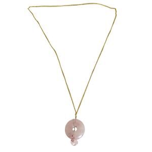 Elevate your style and energy with this stunning 14K Gold Plated Quartz Donut Medallion Necklace.