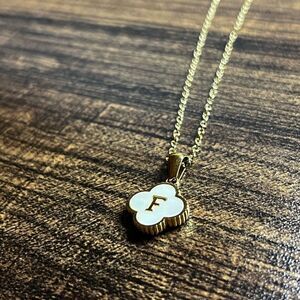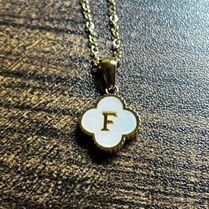 14K Gold Plated Stainless Steel Initial Necklaces “F” Four Leaf Clover Necklace