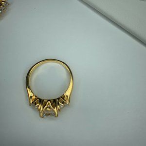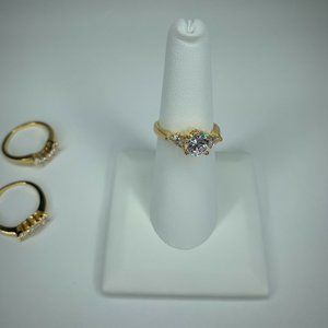 Women's Sterling Silver /14k Gold Plated Round Cut CZ Cubic Zirconia and Cross Bridal Set. Engagement ring has 8mm x 4mm (1/2 carat) CZcenter stone and a Cubic Zirconia