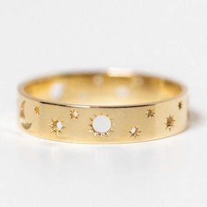 💎14K Gold Plated Sun Moon Star Unique Wedding Ring, MLNN1222