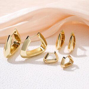 14K Gold Plated Thick Chunky Geometry Earrings for Women