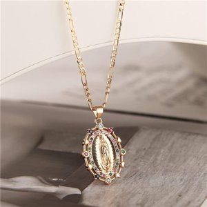 14K Gold Plated Virgin Mary Prayer Necklace Our Lady of Amulet Pendant 17 Inch