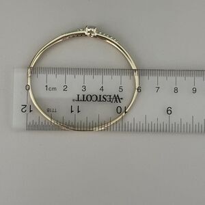 This 14K Gold Plated Women's Bangle Bracelet features a round cubic zirconia gemstone as the main stone. The hinged closure makes it easy to wear on various occasions such as Mother's Day, Christmas, weddings, anniversaries, birthdays, and Valentine's Day. The bangle style bracelet is crafted with gold filled metal and nickel-free features for a comfortable and stylish accessory. With a round shaped main stone and prong setting, this high-quality piece exudes beauty and elegance, making it a perfect gift for any special occasion.