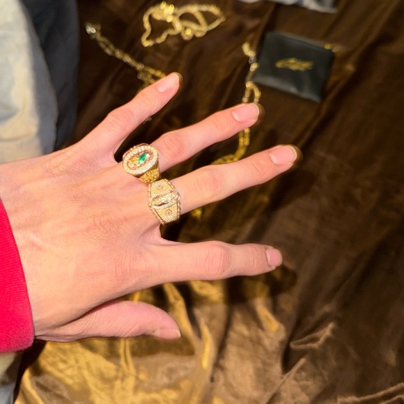 These rings are 14K Vermeil ( Gold Plated ). Great accessories for going out, and have great longevity ( good quality; worn for months, minor wear & tear ).