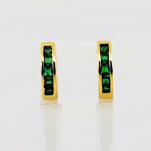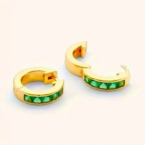 Brand New Women's Small Gold & Emerald Hoop Earrings
