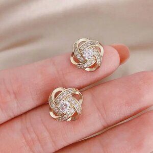 14K Gold Twisted Woven Knot Womens 2ct Diamond Stud Earrings 14 K Silver Jewelry