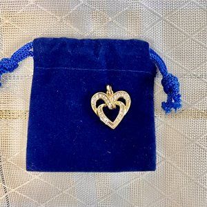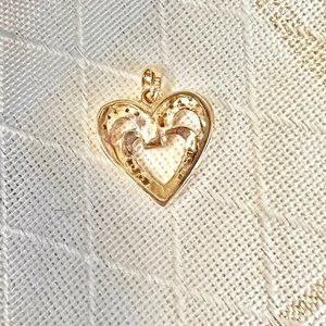 14K Gold Vintage Double Heart Diamond Heart Pendant, Vintage Daimond Pendant 14K
