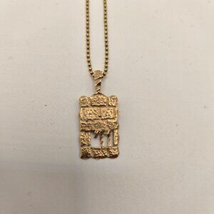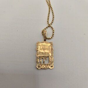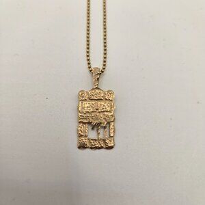 14K Gold Western Wailing Wall Chai Pendant Necklace Judaica 18" Chain