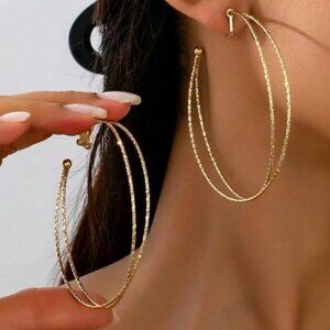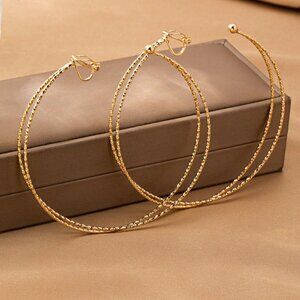 Brand NEW Women's Large Twisted Gold Clip On Hoop Earrings