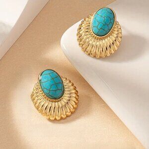14K Gold Womens Turquoise Gemstone Earrings Ladies New 14 Karat Silver Jewelry